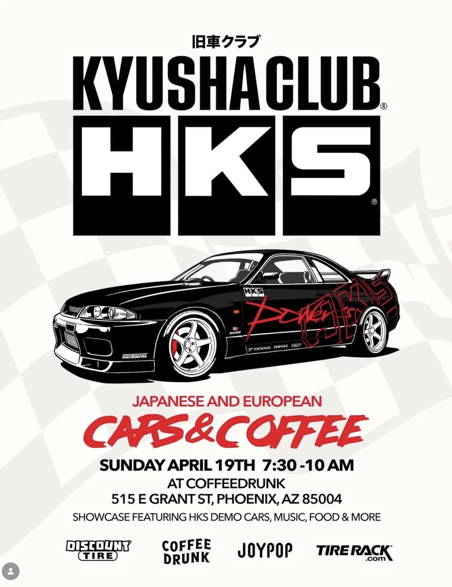 Kyusha Club cars & coffee Sunday, April 19, 2026 7:30 AM 10:00 AM Cofeedrunk 515 East Grant Street Phoenix, AZ, 85004 United States (map) Google Calendar ICS